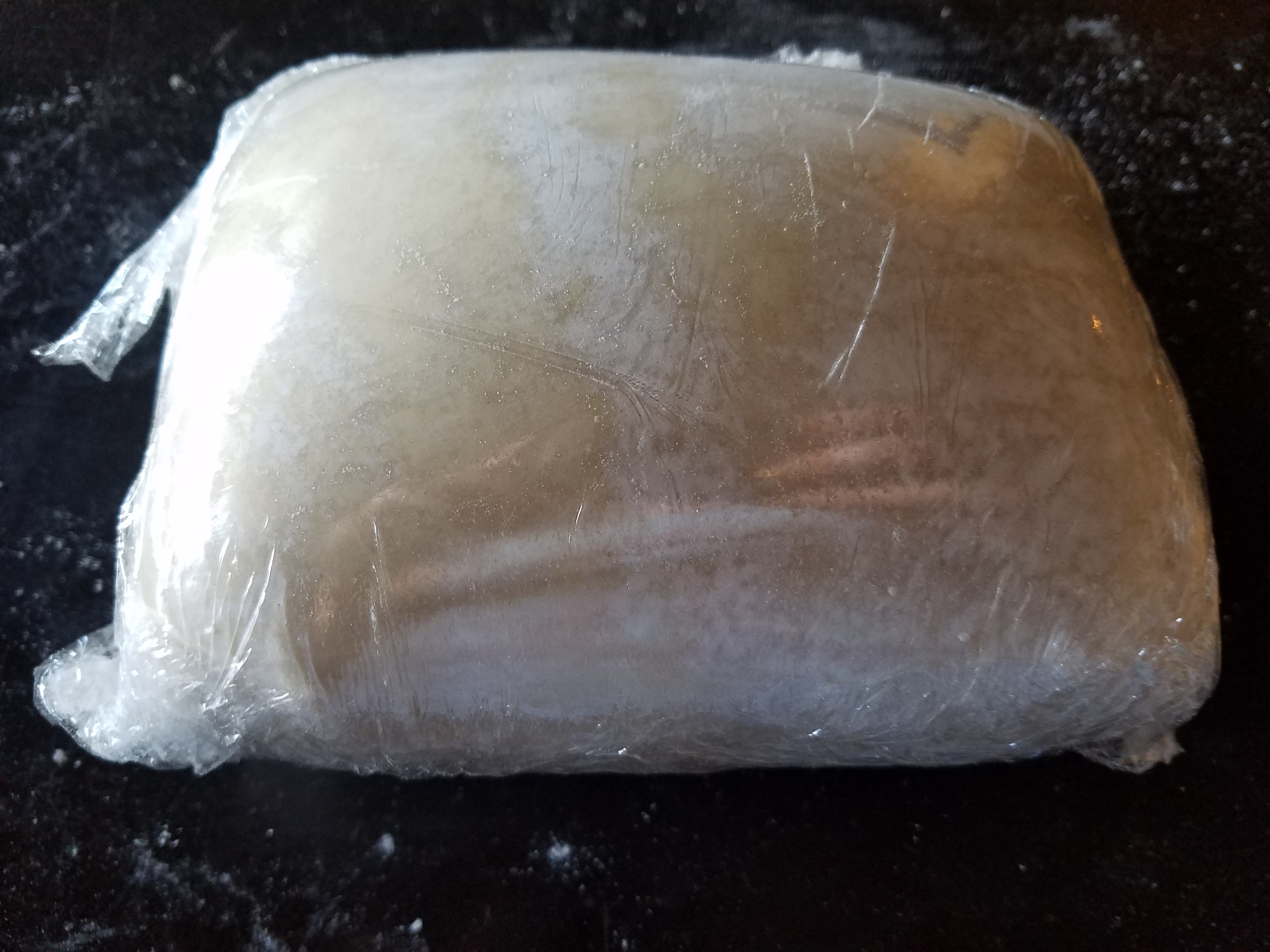 - Tightly wrap the tri-folded dough in plastic wrap and place in refrigerator of 30 minutes or more.