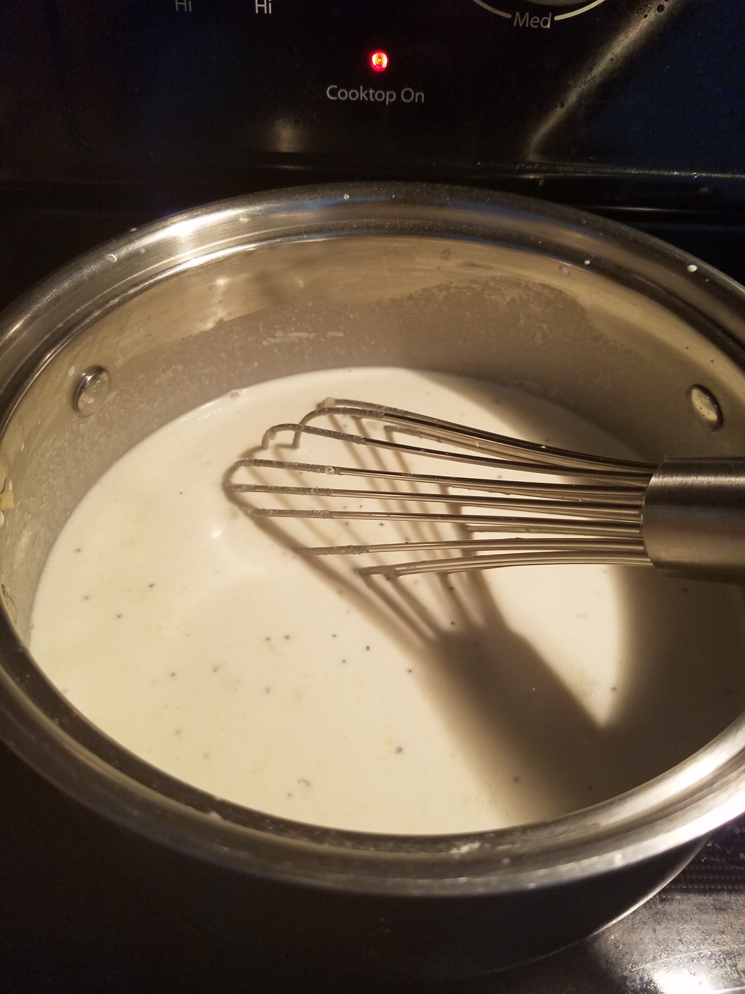 - Wisk in half & half and cook until it coats the wisk and begins to thinken.