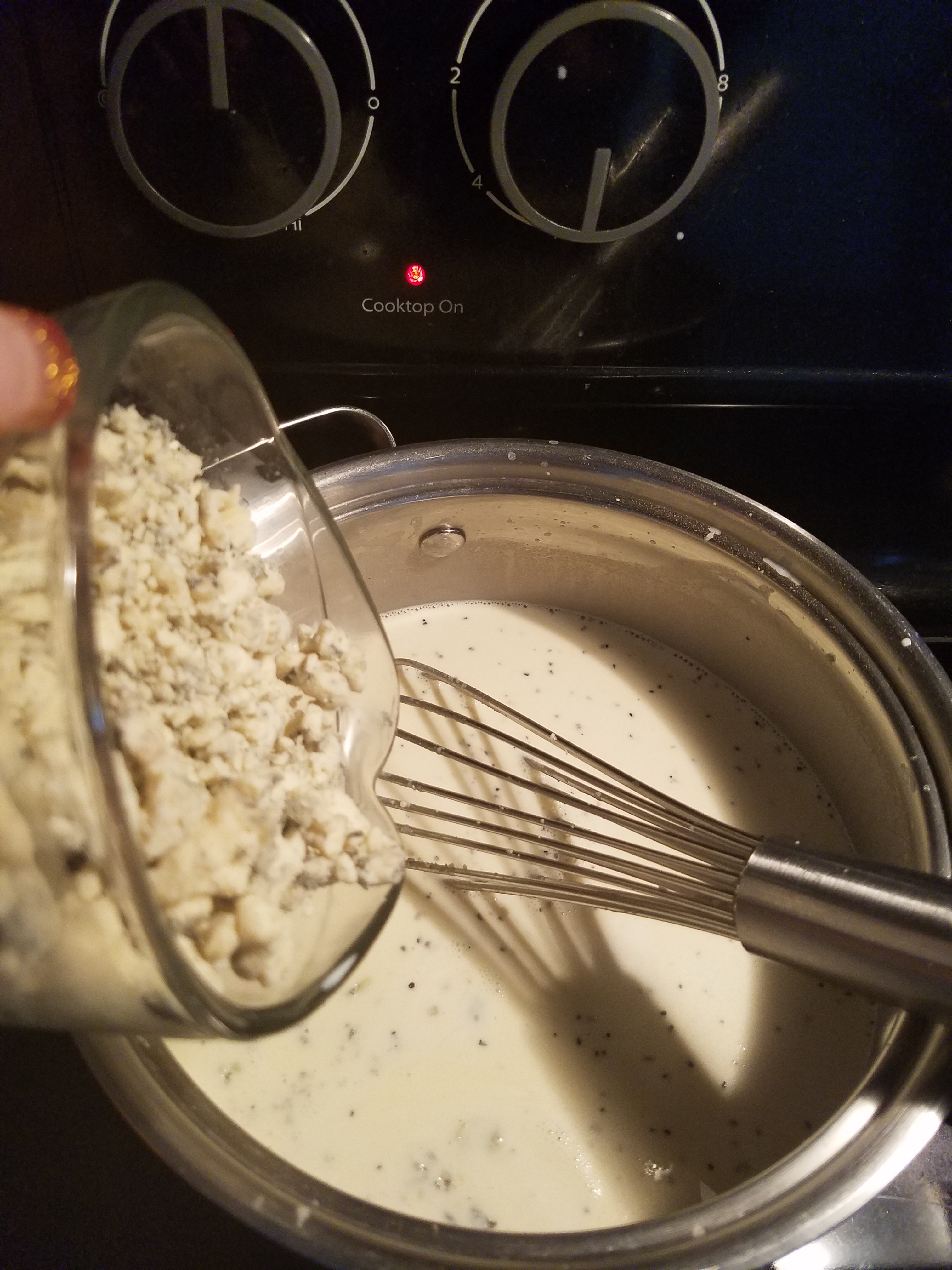 - Wisk in gorgonzola cheese until smooth.