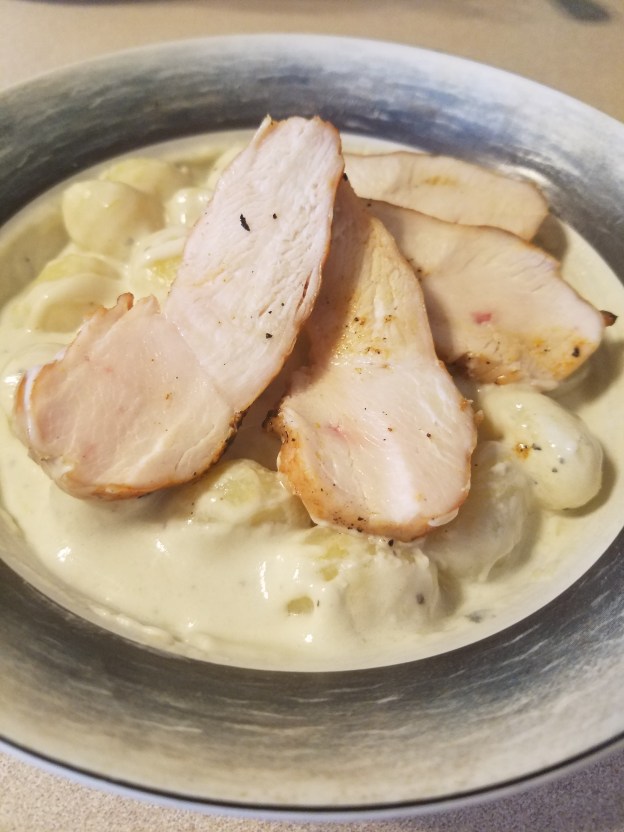 - Divide gnocchi and sauce into 6-8 bowls and top evenly with sliced chicken.