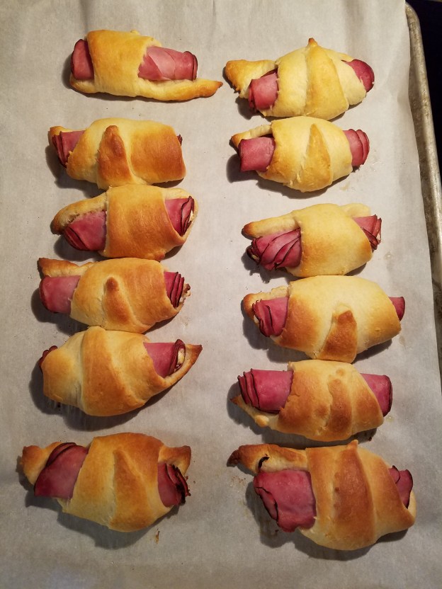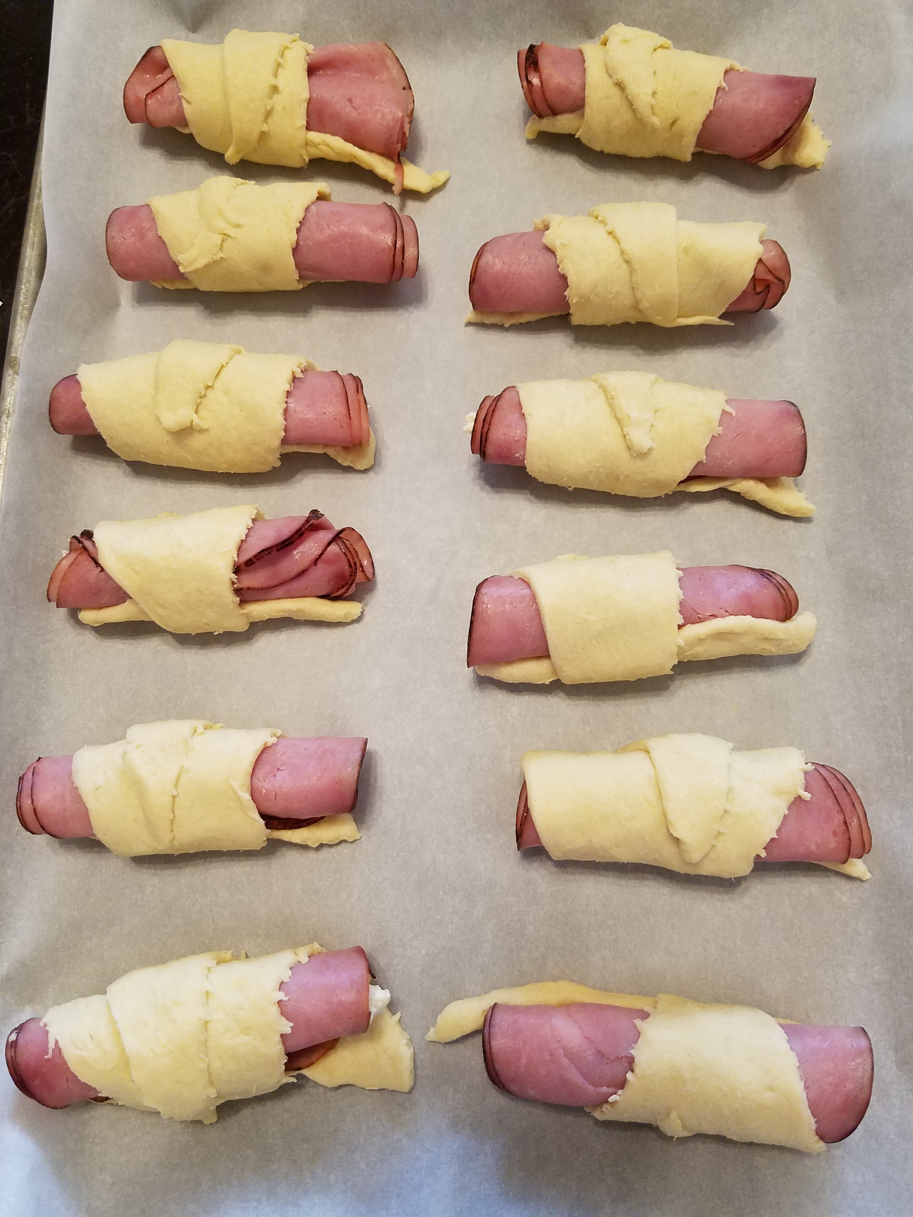 Roll Crescent dough around the meat roll. And repeat until all 16 are complete.