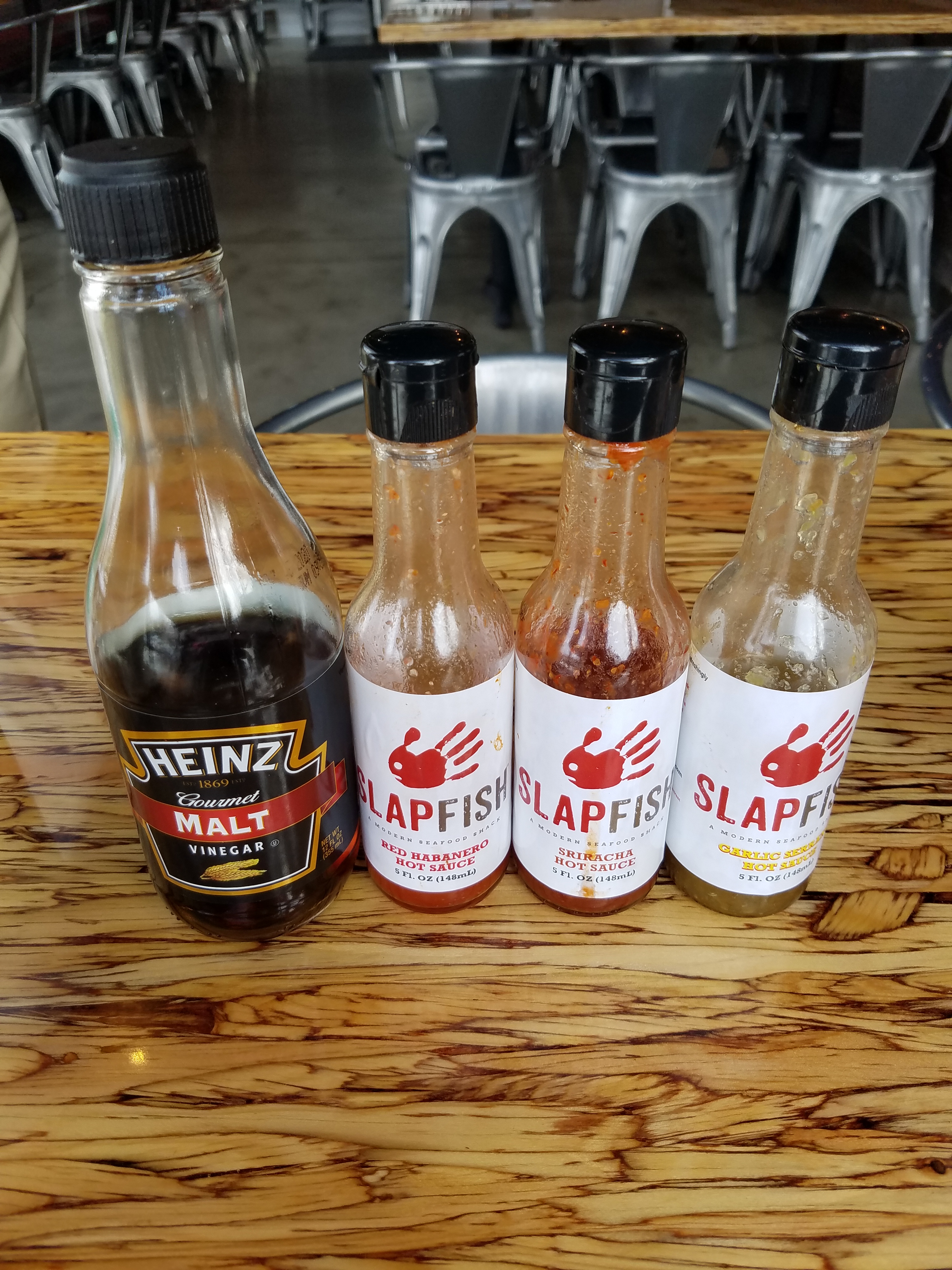 L- I love Malt Vinegar on my Fried Fish, but their house sauces where also tasty. I will let J review them in detail.