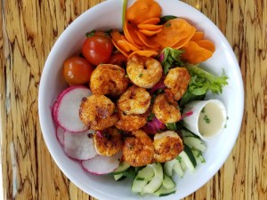 S – I really like salad, and this one did not disappoint. There was a great mix of fresh produce (Lettuce, Raddishes, Cucumbers, Carrots, and Coleslaw) plus some pickled cabbage. The shrimp was seasoned and grilled to perfection. All of these, combined with the honey vinaigrette, led to a very pleasant trip to Flavor Town.