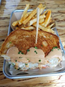 J – The sandwich, let me try to describe this for a second. First you have a lot of fresh tender lobster, then you add that to a grilled cheese, how can you go wrong, well maybe if you add the sauce they put on it, but remove the sauce and i think this a great sandwich. The sauce was a little too much and for me it distracted from the cheese and lobster.