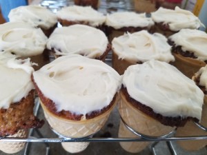 We LOVE Carrot Cake. I can’t even remember when I started making it. We love it thin in a sheet pan, layered with frosting in the middle, but our all time favorite is in Ice Cream Cones.