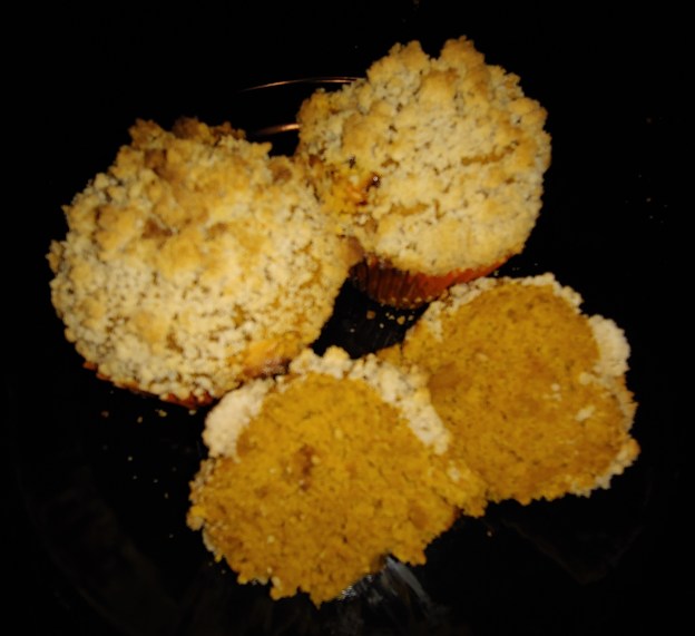 I wanted to make pumpkin muffins for Halloween breakfast tomorrow, so I went to my storage room for inspiration. These turned out amazing!