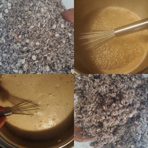 Pour the melted butter mixture into the dry ingredients and stir till well combined. If the mixture seems to dry, add a little more brewed Choffy (I added about a tablespoon).