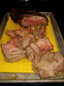 To start with you will need to have a Beef Tri Tip. Refrigerate the Tri Tip until completely cooled. APlace in the freezer for 20 minutes to make it easier to slice. Use a meat slicer or electric knife to slice thin.