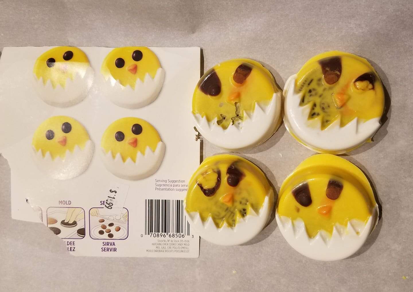 Last Easter I was so excited when I found mold for dipped Oreos. Well, as you can see one the left is what they were supposed to look like and on the right is how they turned out. Nailed it, NOT!!!!