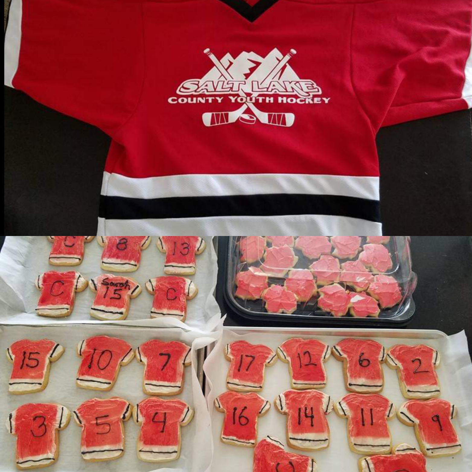 My son asked me for Jersey Cookies for his team treats, They didn’t look exactly like his Jersey, but each teammate got a cookie in the team colors with their own number on them. Almost Nailed it!