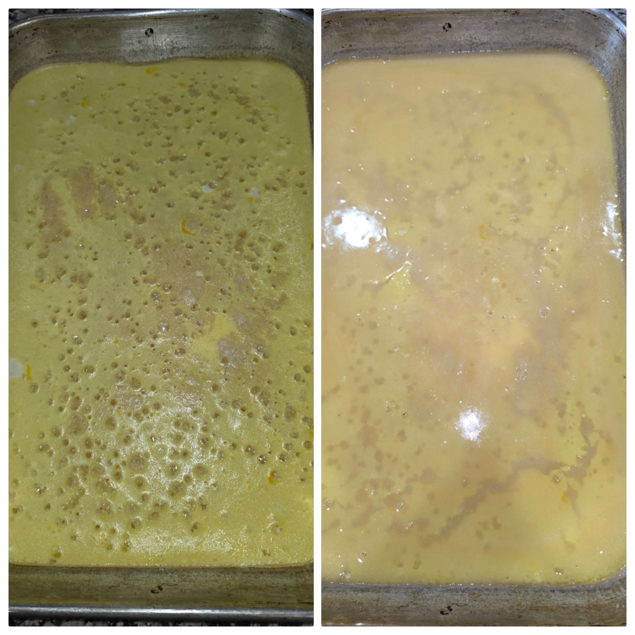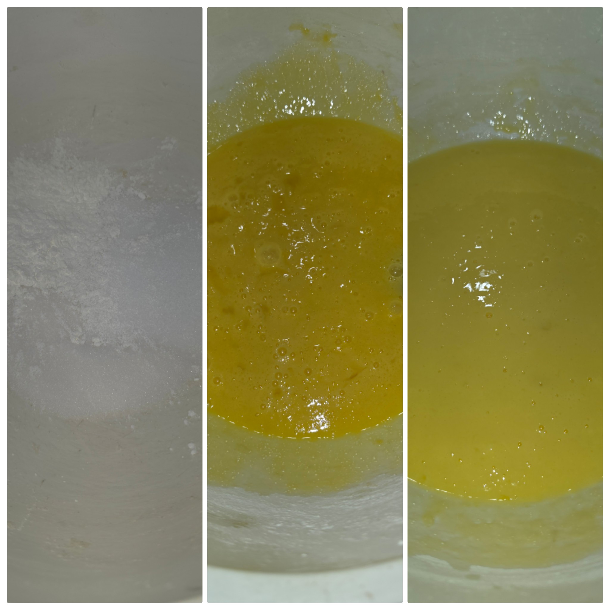 Combine monk fruit, sugar and corn starch. Whip in eggs, lemon juice and lemon essential oil.