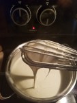 3. Wisk in half & half and cook until it coats the wisk and begins to thinken.