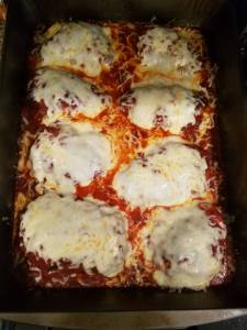Parmesan Chicken is an Italian classic. I played around until we got it just the way we wanted. We serve it over pasta with salad, over Parmesan Crusted Cauliflower,  or on its own with a side of garlic bread & salad.