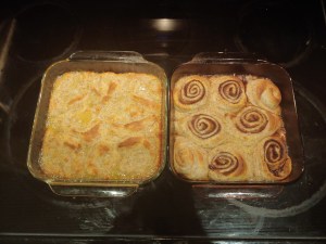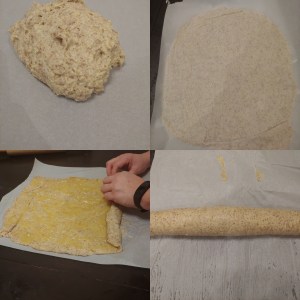 Combined cheese and almond flour. Microwave on high for 1 minute. Stir return to the microwave for 1 minute. Add Egg and incorporate completely. Place between 2 pieces of baking parchment paper and roll out into a rectangle. Remove the top baking paper/parchment. (If the mixture hardens and becomes difficult to work with, pop it back in the microwave for 10-20 seconds to soften again but not too long or you will cook the egg.) Spread filling over the dough and roll. Slice into 8 pieces and place in a greased 9×9 baking pan. Bake for 12 to 15 minutes until golden brown. Spread with frosting while warm.