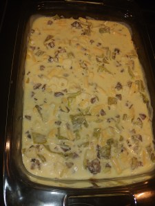 In a mixing bowl cream together cream cheese, whipping cream and shredded cheese until the cream cheese is well incorporated. Add one egg at a time mixing well.