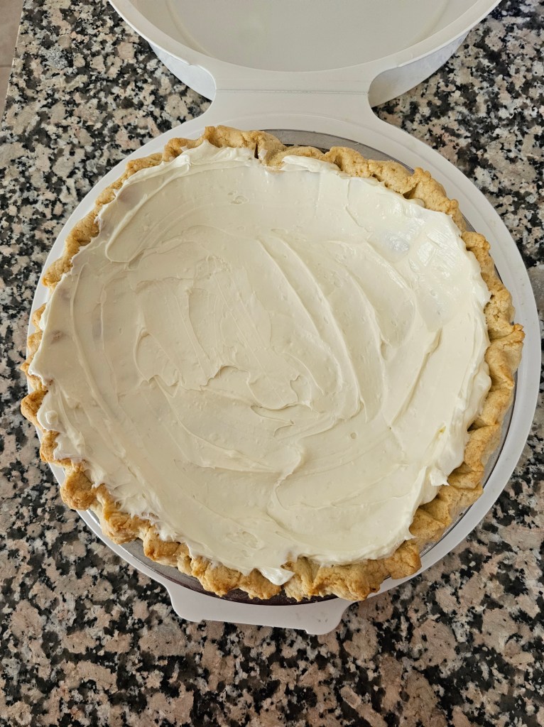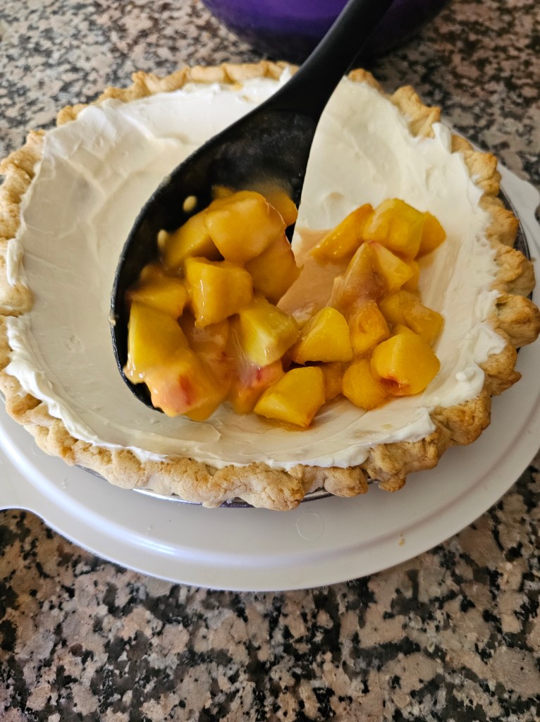 I grew up with several peach trees in our yard so fresh peach pie was a tradition. The one thing I didn’t like was how quickly the crust would go soggy. I also love cream cheese pies, so this is an amazing combination of both.